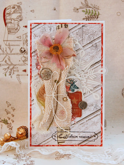 I would like to show envelope for New Year, which I created for challenge of blog Lemon Owl. I used paper and mini card of Lemon Owl. Envelope is closing by mins of a magnet, inside is a card from the same collection.